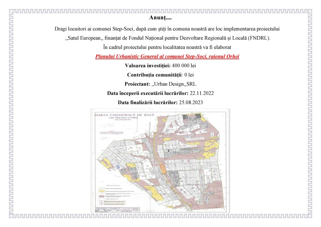 Autoritatea executivă а Consiliului local Step-Soci, raionul Orhei inițiază începând cu data de 09.02.2026 consultarea publică […]