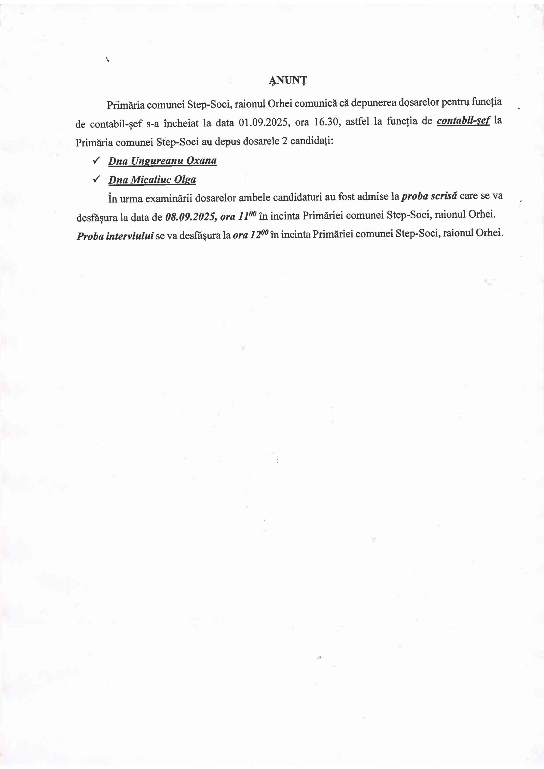 Anunț: Candidații la funcția de contabilă-șef admiși la interviu